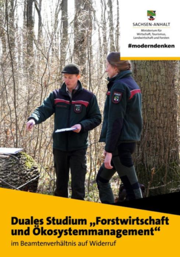 - Du möchtest an der Umgestaltung der Wälder in Sachsen-Anhalt mitwirken und sie nachhaltig entwickeln und Du kannst Dir später eine Tätigkeit z.B. als Revierleitung in den Forstdienststellen des Landes Sachsen-Anhalt vorstellen?